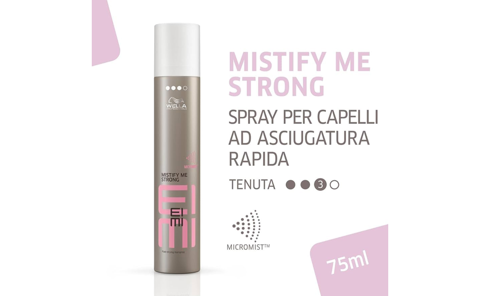 Wella EIMI Mistify Me Strong è una lacca spray ad asciugatura rapida.